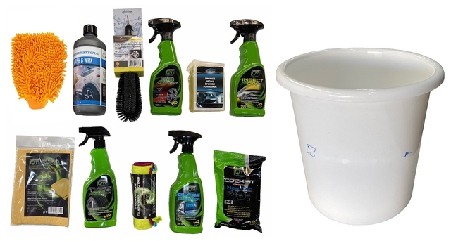 Autowasset XXL (12 delig) alles voor de binnen- en buitenkant van je auto (inclusief gratis emmer)