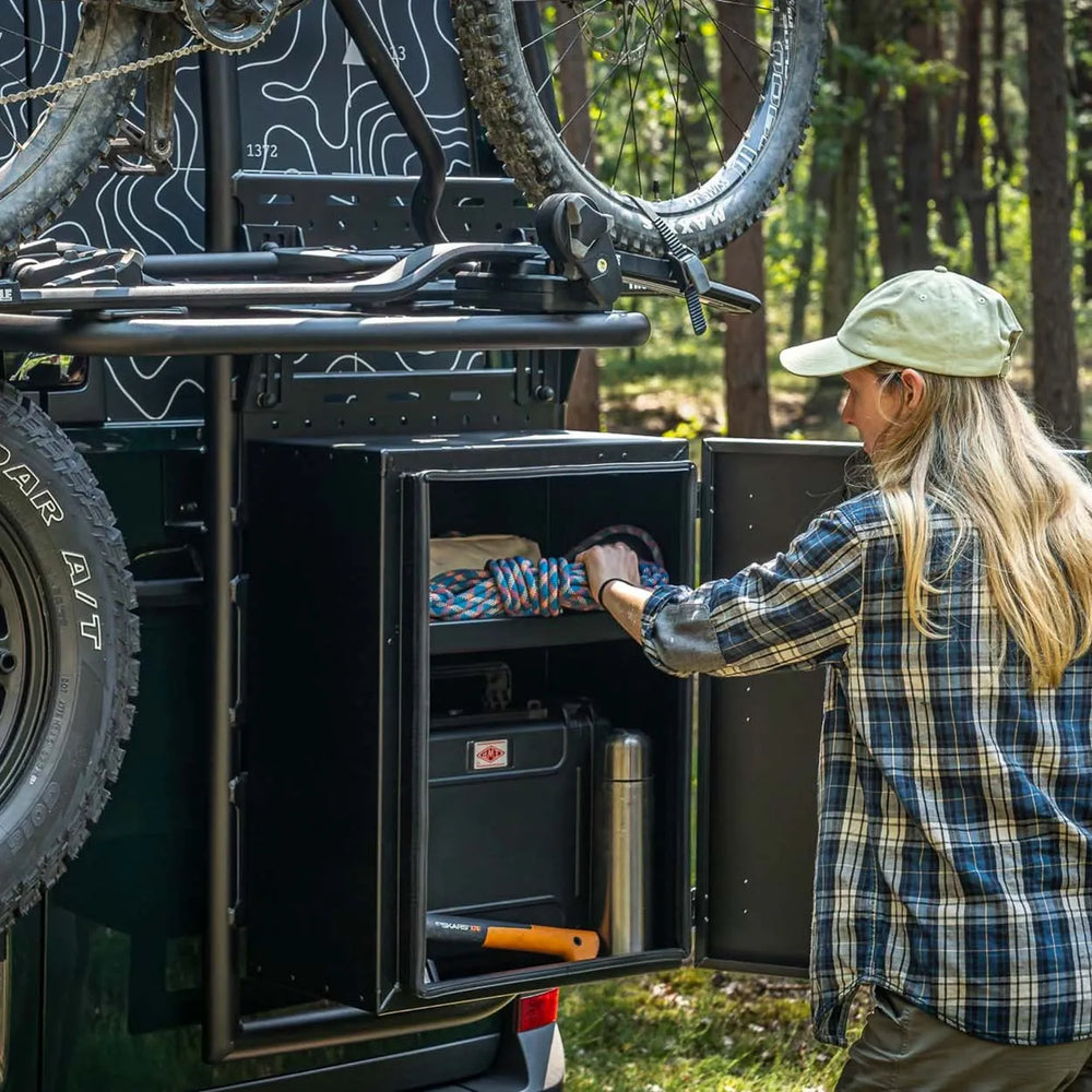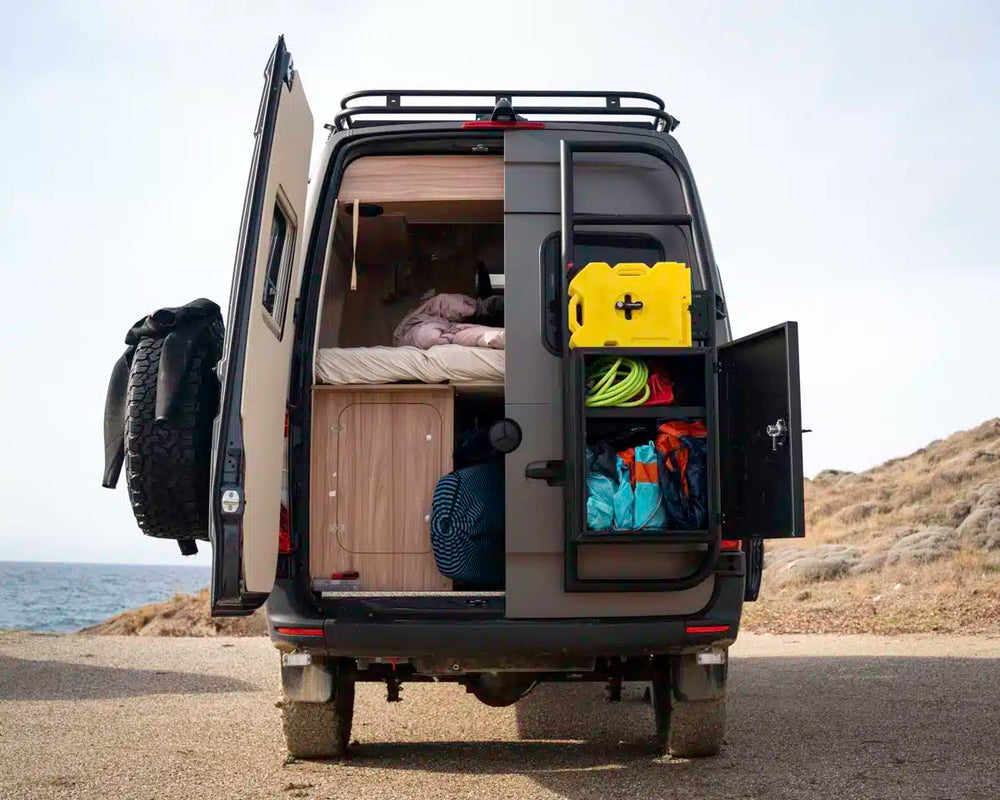 Of je nu met een Mercedes Sprinter of Volkswagen Crafter rijdt, de Cargo Box is ideaal voor het opbergen van vuile of natte spullen, gereedschap, kites, wetsuits, sneeuwschoenen, recovery gear of een kleine generator. Alles blijft netjes buiten de leefruimte, maar toch veilig opgeborgen.