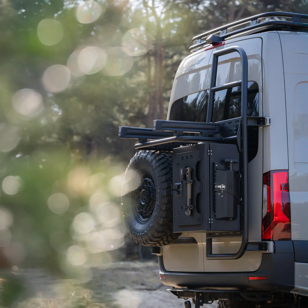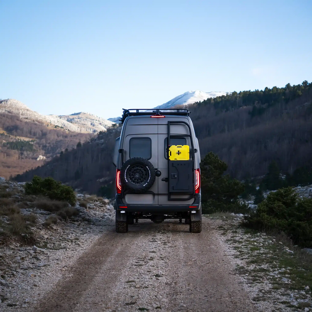 De Sequoia Cargo Ladder is een multifunctionele ladder en drager in één, speciaal ontworpen voor de Mercedes Sprinter W906, W907 en W910 (H2). Deze stevige achterdeur ladder geeft je campervan niet alleen een robuuste uitstraling, maar maakt het ook makkelijk om extra uitrusting of accessoires te bevestigen.
