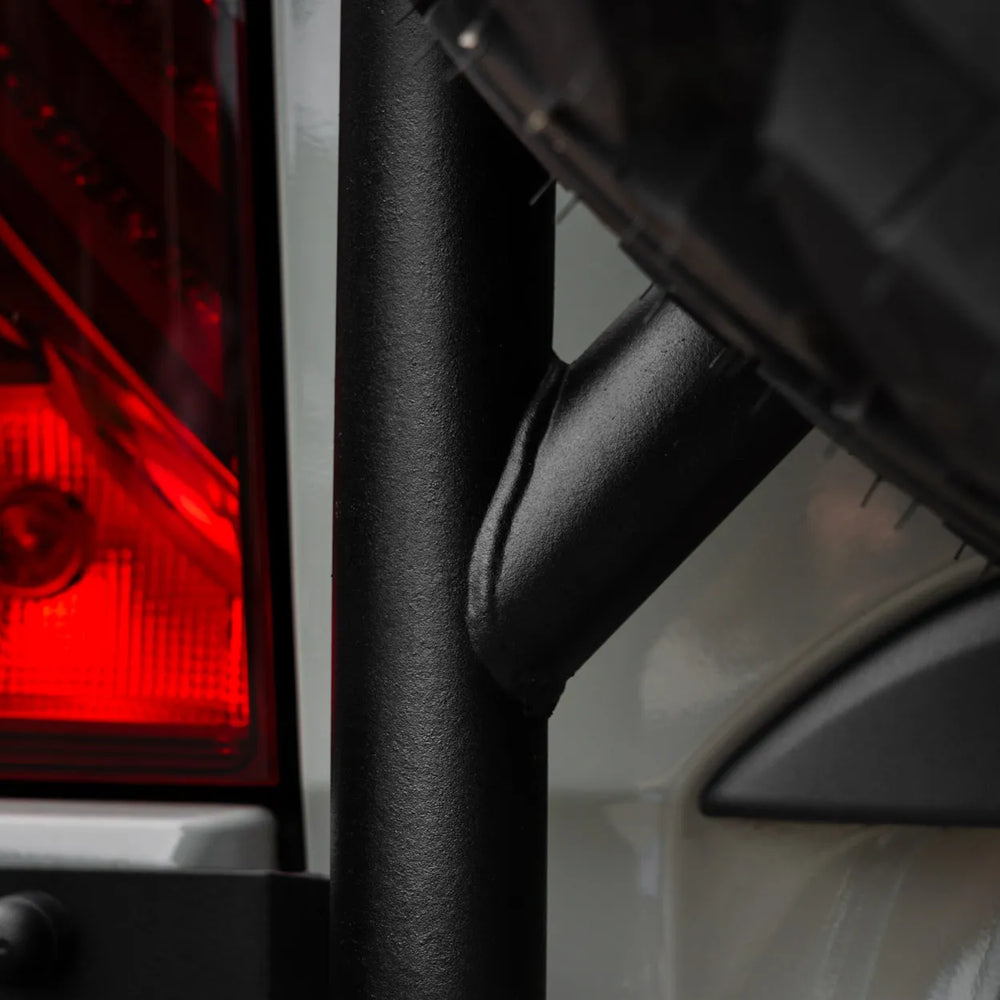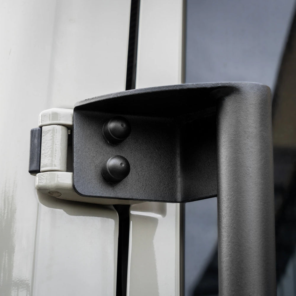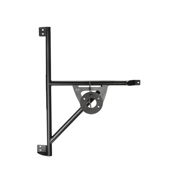 De Sequoia Reservewieldrager is eenvoudig te monteren en ontworpen om direct op de scharnieren van de achterdeur te bevestigen.