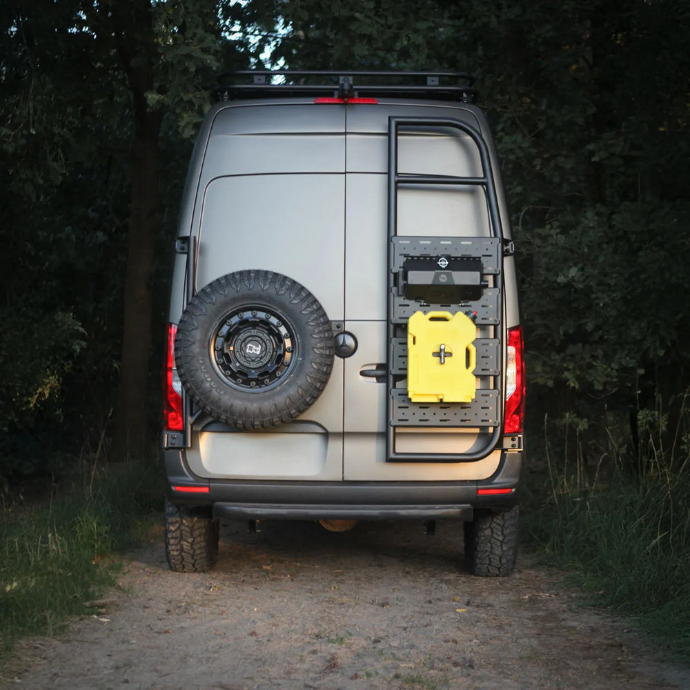 De Sequoia Reservewieldrager is de perfecte oplossing voor iedereen die zijn Mercedes Sprinter (2018 en nieuwer)wil upgraden met grotere wielen of meer onderruimte onder de bus. Deze robuuste wieldrager verplaatst het reservewiel van onder de bus naar de achterdeur, wat niet alleen praktischer is, maar ook extra ruimte vrijmaakt voor watertanks, brandstoftanks of andere aanpassingen.