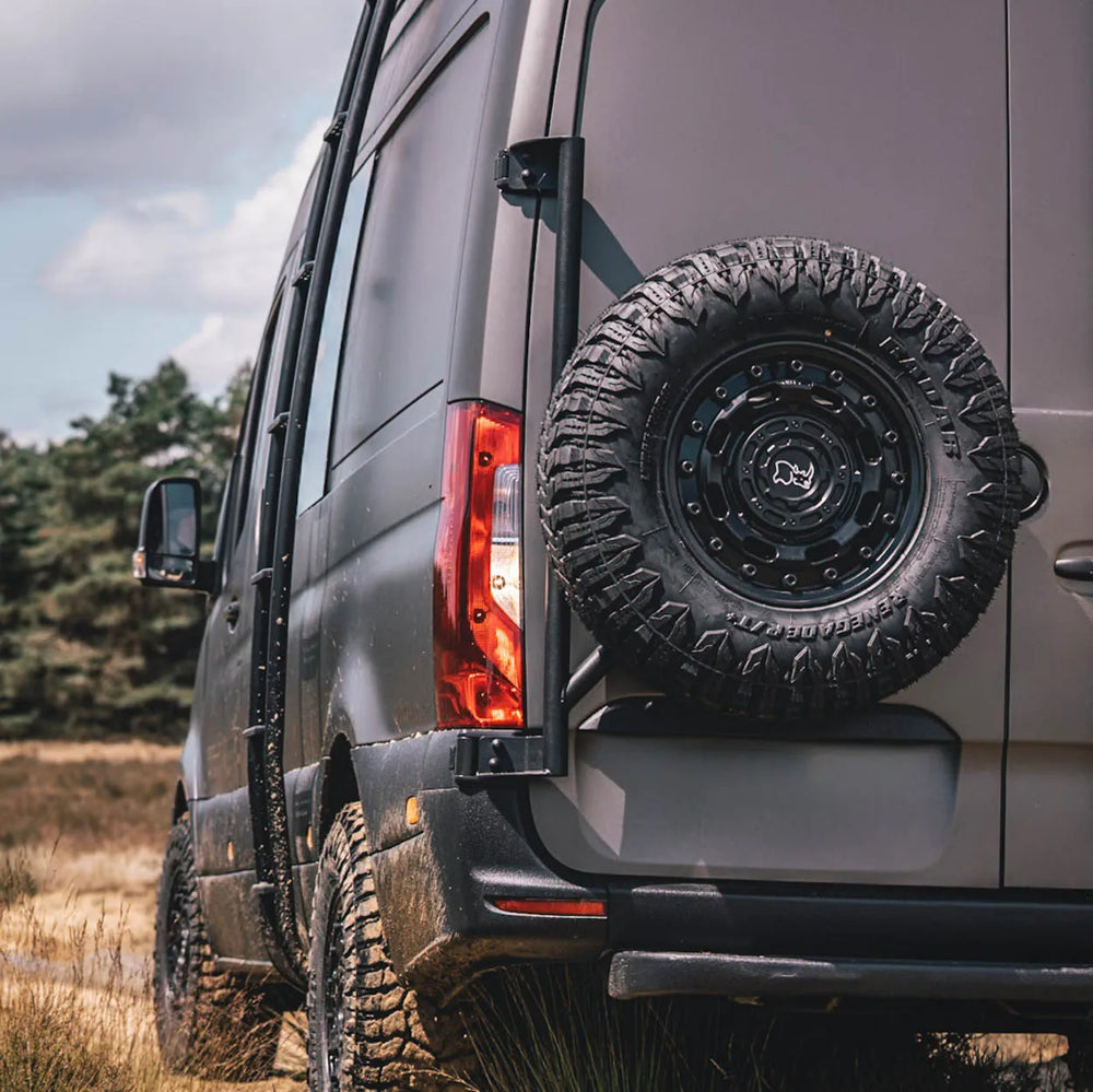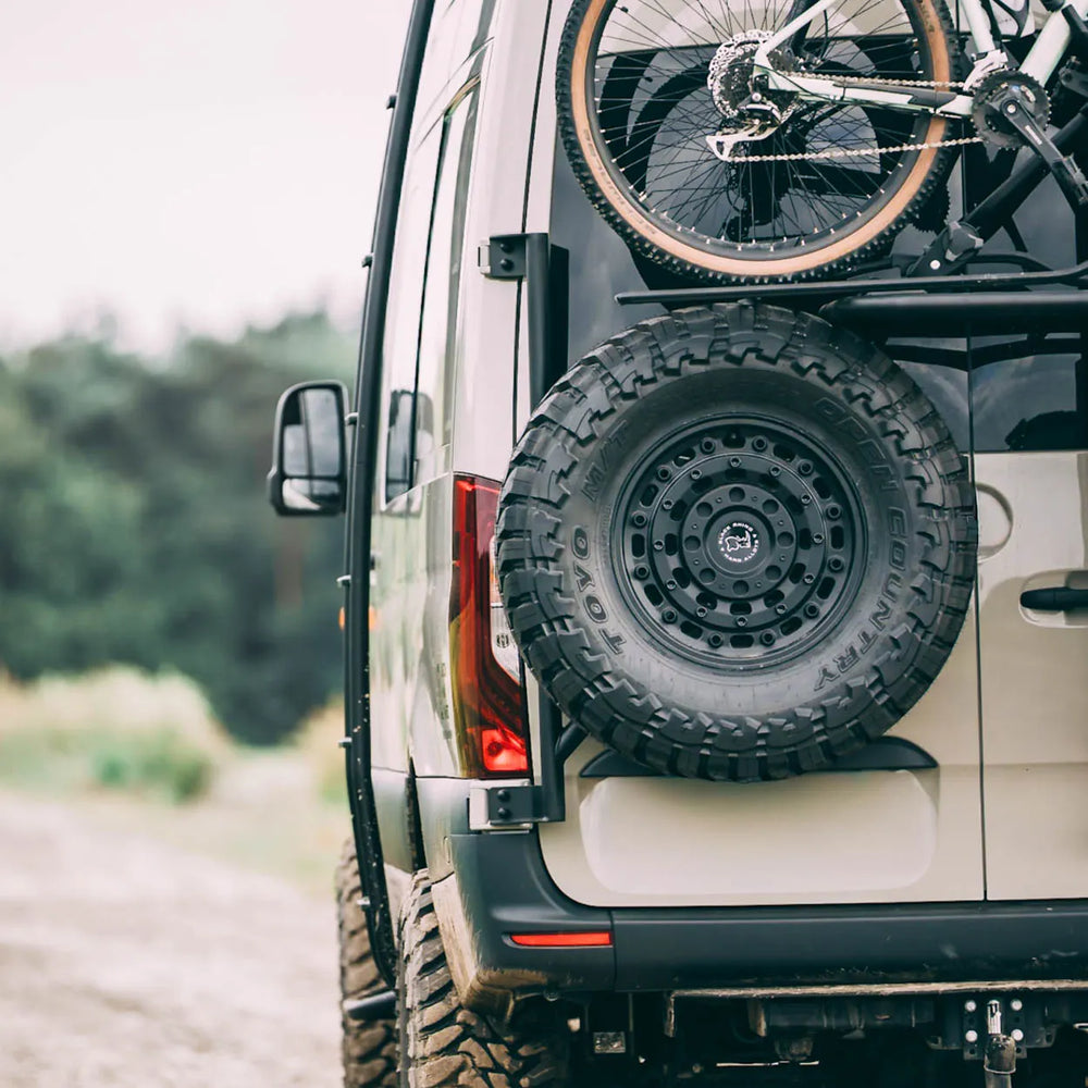 • Geschikt voor grotere wielen: De standaard wielruimte onder de Sprinter is vaak te klein voor grotere banden. Met de wieldrager monteer je moeiteloos grotere wielen (tot ongeveer 33”).