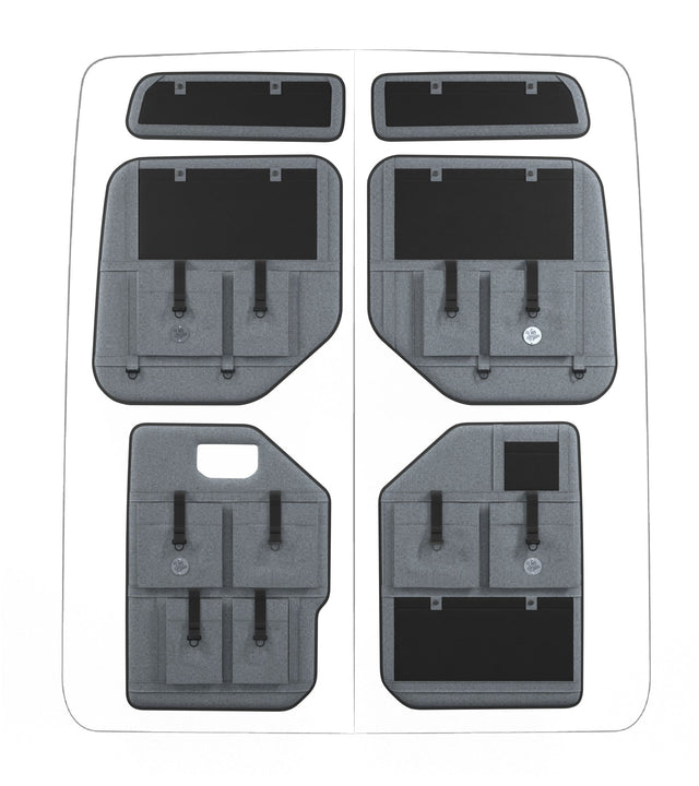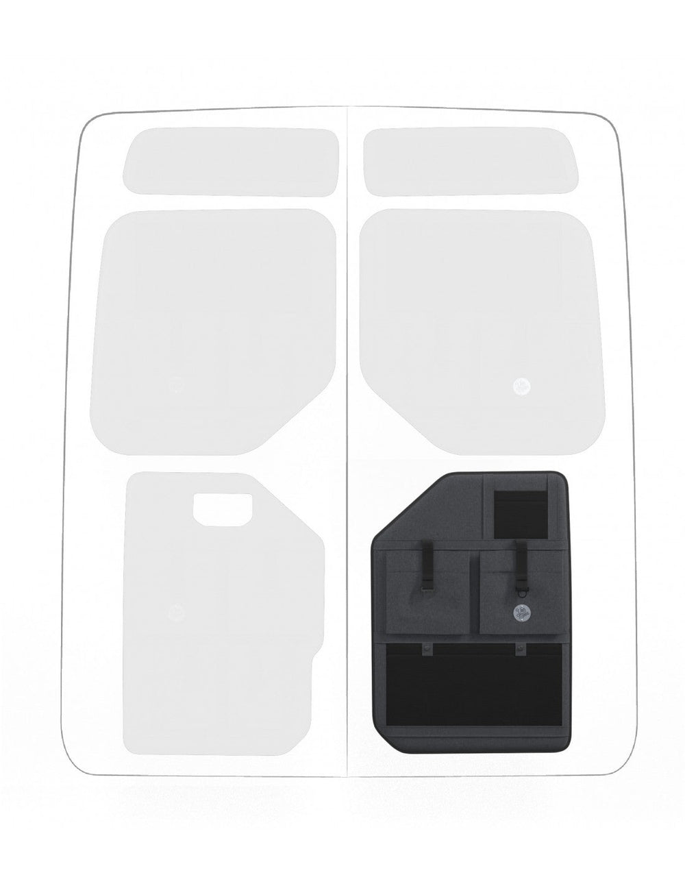 Met de Moon Organizer benut je de “verloren ruimte” van je achterdeuren optimaal — ideaal voor elektrische kabels, watervulslangen, bijlen, verlichting en alle kleine spullen die je onderweg of op de camping nodig hebt.