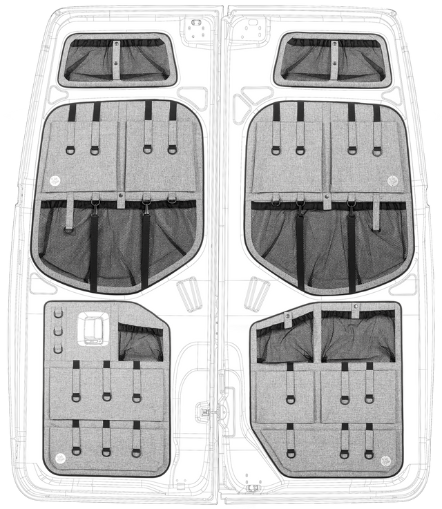De Vandermoon Deur Organizers zijn ontworpen om elke centimeter van je Sprinter optimaal te benutten. Gemonteerd op de achterdeuren creëren ze extra, goed bereikbare opbergruimte voor al je camper- en outdoorbenodigdheden. Van je verlengkabel en watervulslang tot een bijl voor het kampvuur, alles krijgt een vaste plek.